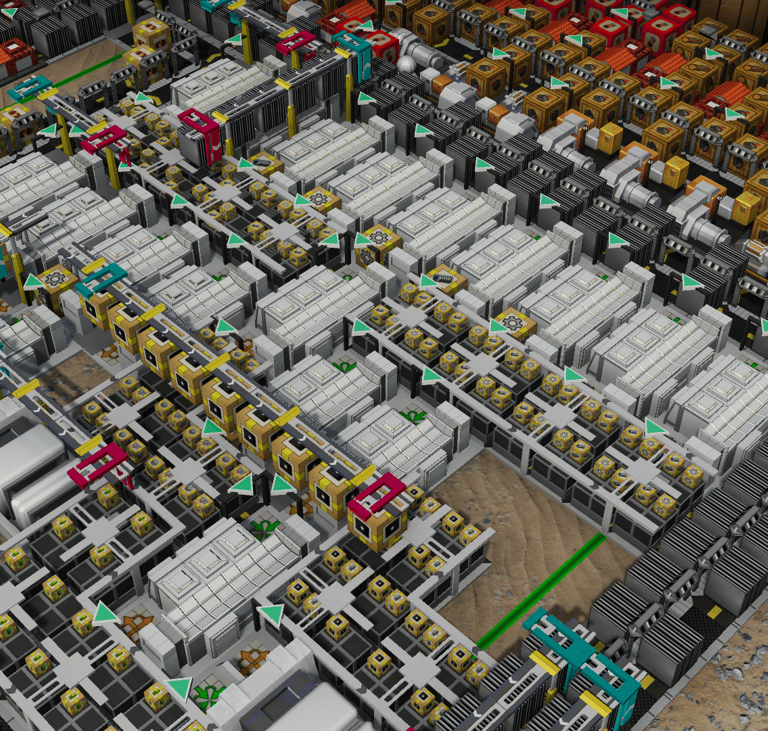 Build factories, design production chains, and boost efficiency with conveyor belts and highlines.